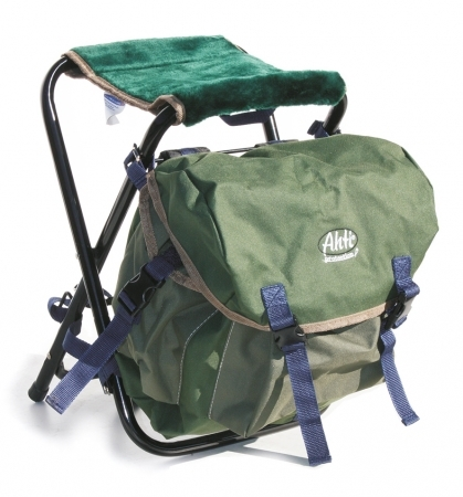 Nailonkankainen pilkkijän perusreppu fleeceistuimella. Istuinkorkeus 48 cm, kolme lukollista taskua, jakkara 19 mm metalliputkesta.