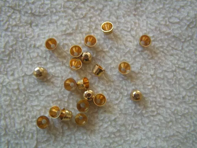 Ranskalaisen Bidozin messingistä sorvatut coneheadit, pituus:5mm,leveys:5mm, 20kpl pussissa. Väri:messinki, tasakärkinen malli.