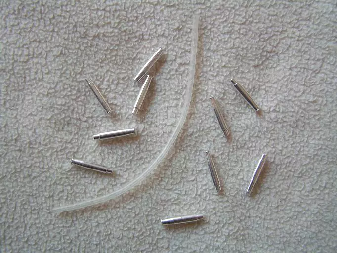 Ranskalaisen Bidozin alumiinista sorvattu putkiperhorunko, pituus:22mm, 10kpl pussissa ja 10cm kirkasta silikoniputkea.