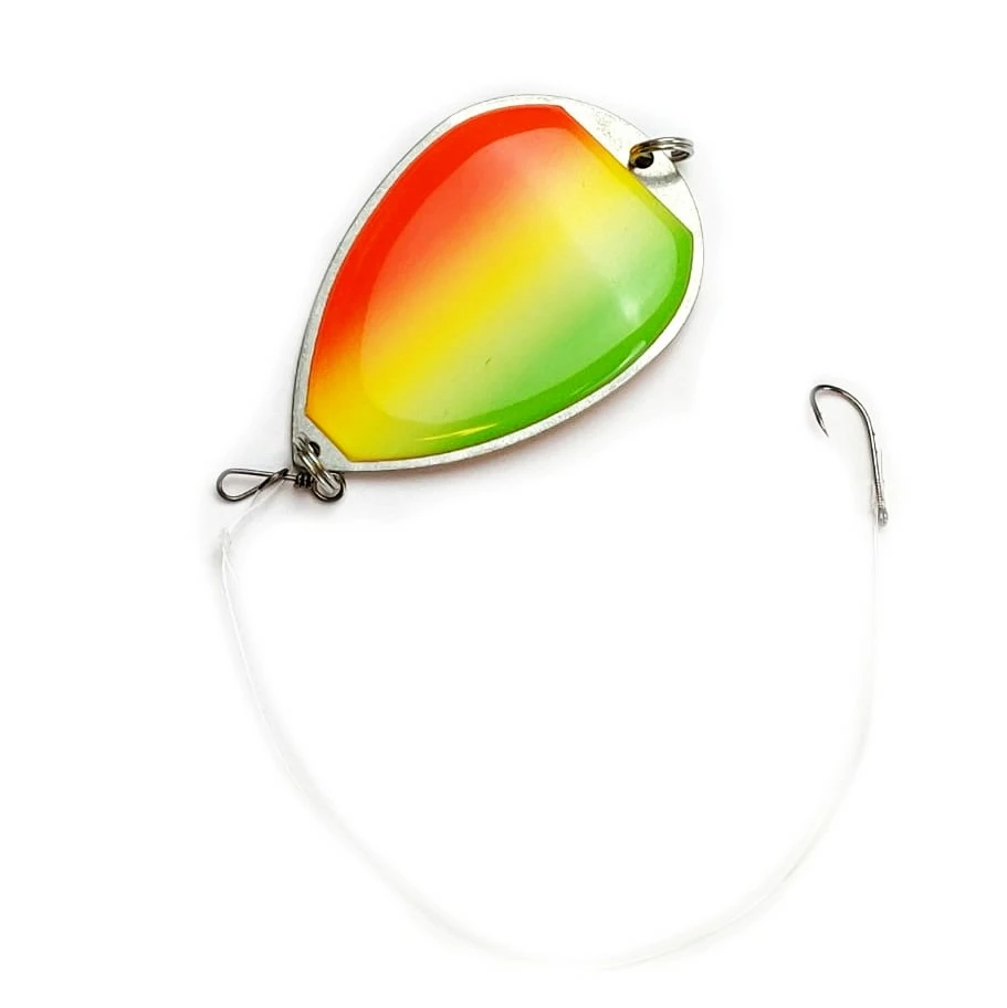 Älä piilota syöttiäsi, vaan näytä se kaloille! Jasu pilkkilätkä houkuttelee kalat tehokkaasti syöntietäisyydelle kauempaakin. 6omm pilkki on valmistettu Suomessa 1 mm paksuisesta rosterista, jonka alapuolella on pikalukko, 15 cm siimatapsi ja yksihaarakoukku. Lätkän alle voidaan siimatapsiin laittaa myös jigi, morri tai perho. Pilkissä on taitos, joka antaa lätkälle huimaa eloa veden alla. Perinteisesti lätkää käytetään pohjoisessa raudun, ahvenien ja taimenien pilkintään, mutta etelämmässä syvemmillä selkävesillä se on todettu välillä ylivoimaiseksi houkuttelemaan ahvenia ja kuhia pelipaikalle. Jasu pilkkilätkää on saatavilla kolmessa eri huomiovärissä.