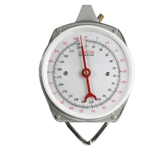 Fladenin iso, jämäkkä ja kestävä metallinen jousivaaka, joka punnitsee saaliisi aina 100kg/220lb:n asti.
