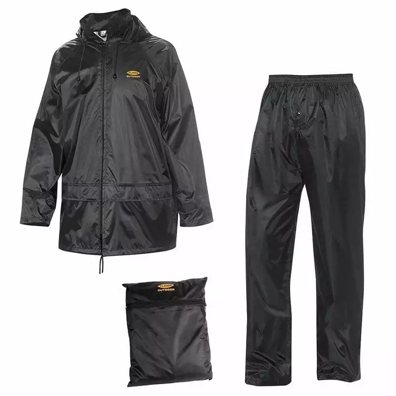 This lightweight, foldaway two-piece suit is 100% rain and windproof and pro-vides the perfect outer shell to keep you warm and dry this season. The suit comprises a jacket and trousers and is fitted with wind blockers in each sleeve, a fold-away hood and a full length, heavy-duty zipper. It comes packed in a handy waterproof bag.