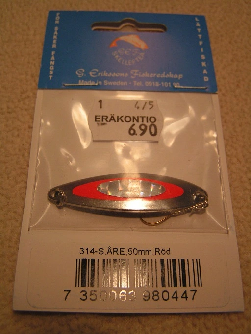 G.Erikssonin Åre -rautupilkki, pituus:50mm,paino:8g, Väri:Hopea.