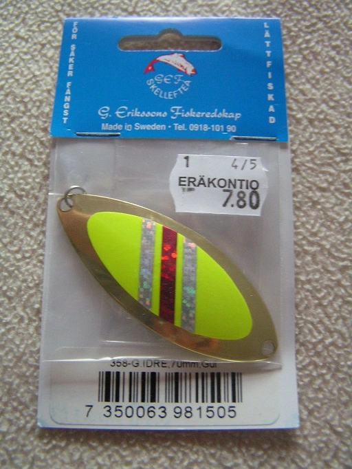 G.Erikssonin Idre -rautupilkki, pituus:70mm, paino:15g, Väri:Kulta.