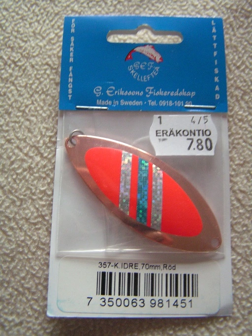 G.Erikssonin Idre -rautupilkki, pituus:70mm, paino:15g, Väri:Kupari