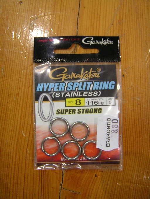 Gamakatsu Hyper Split Ring (Stainless) -uistinrenkaat. Koko:8, vahvuus:116kg, 5 kappaletta.