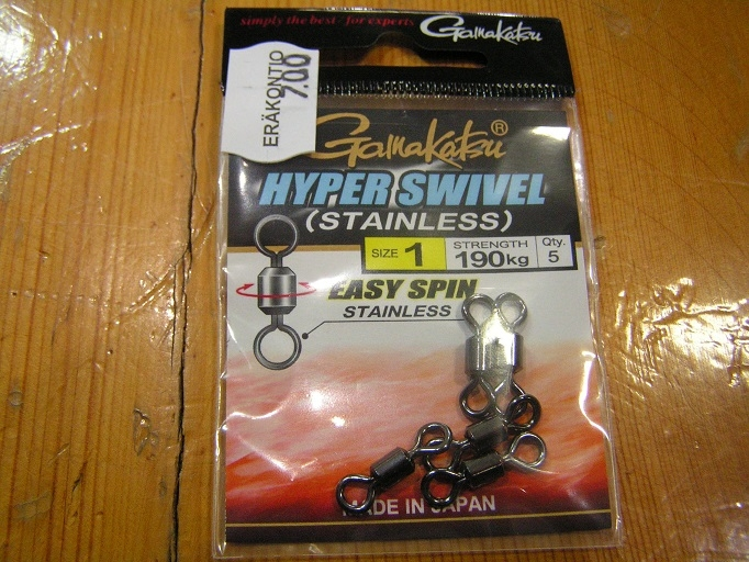 Japanilaisen Gamakatsun Hyper Swivel -kuulalaakeroitu leikari. Materiaali ruostumaton teräs. Todella kestävä leikari. Koko:1:n pussissa 5kpl leikareita ja koko:2:n 6kpl leikareita. Lujuus koko:1/ 190kg, koko:2/ 133kg.