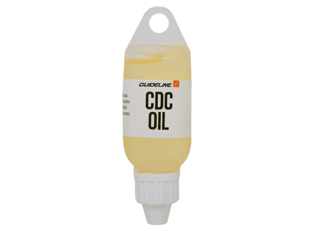 This our own CDC Oil and Gel dry fly floatant. They come in a very clever bottle with an extension in the bottom with a hole, so you can hang it upside down without any extra accessories.