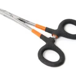 Forceps with serrated jaws with integrated needle for opening hook eyes. Length:14.5cm – 5.7″.