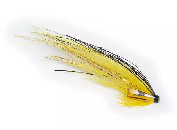 The combination of black and yellow is a favorite for many anglers. This is really an all-round fly. It works just as well on cold clear spring rivers in the scorching sun in the middle of the day in July, or on salmon standing in the ponds when the sun comes out. Recommended tube is Fluorescent Yellow as a hook guide.