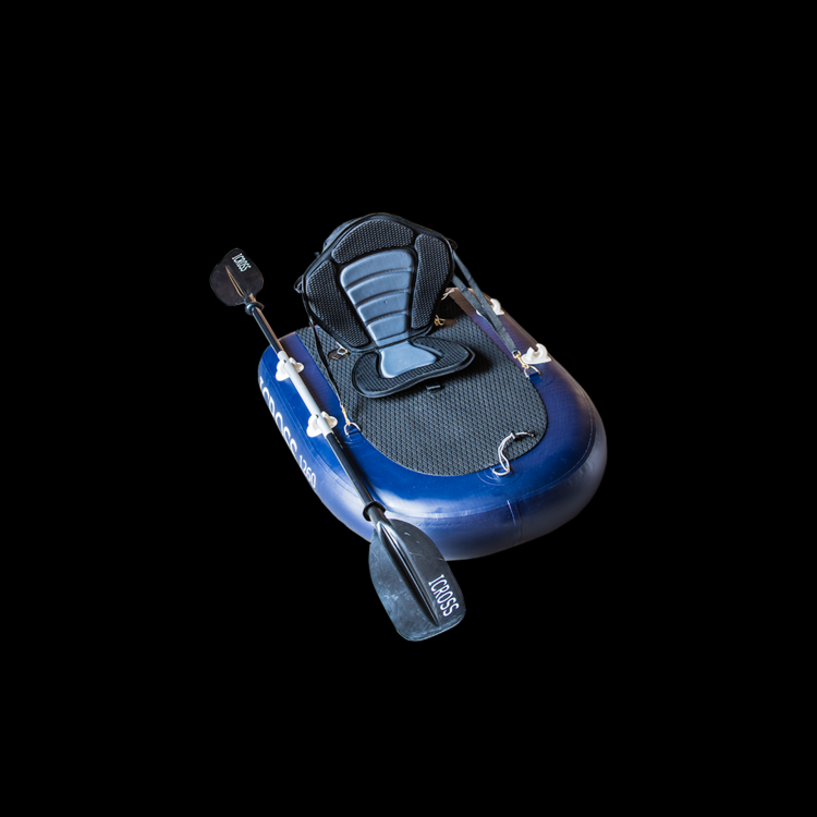 The ICROSS® 1260 measures 126x88x20 and comes with features adjusted for fly fishing, like two brackets on each side for mounting a paddle and an EVA non-slip seat. A centered, high quality, carrying strap. Flexible cord on the back for attaching a drybag. Four D-rings on top, to attach a seat (sold separately). Four D-rings on the bottom to attach backpack straps. D-ring in front. Flexible cord in front for easy securing up to three rods.