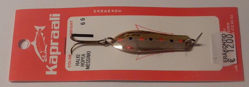 Onni Kapraalin valmistama mahtava lohi-taimen lusikka koviin koitoksiin, paino:6grammaa.