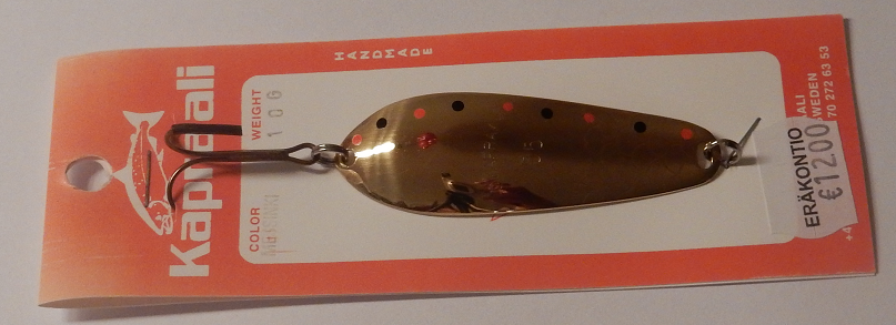 Onni Kapraalin valmistama mahtava lohi-taimen lusikka koviin koitoksiin, paino:10grammaa.