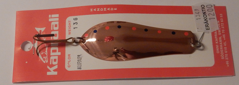Onni Kapraalin valmistama mahtava lohi-taimen lusikka koviin koitoksiin, paino:13grammaa.