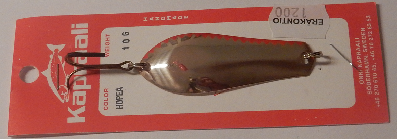 Onni Kapraalin valmistama mahtava lohi-taimen lusikka koviin koitoksiin, paino:10grammaa.