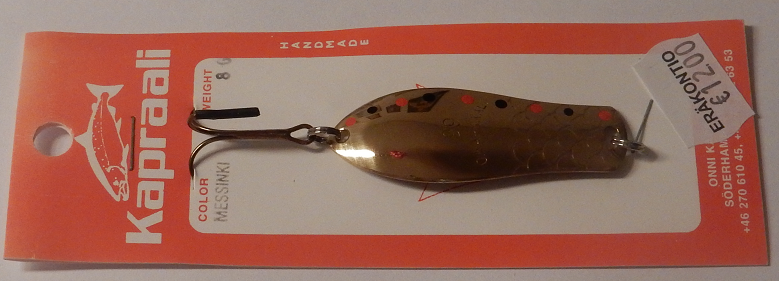 Onni Kapraalin valmistama mahtava lohi-taimen lusikka koviin koitoksiin, paino:8grammaa.