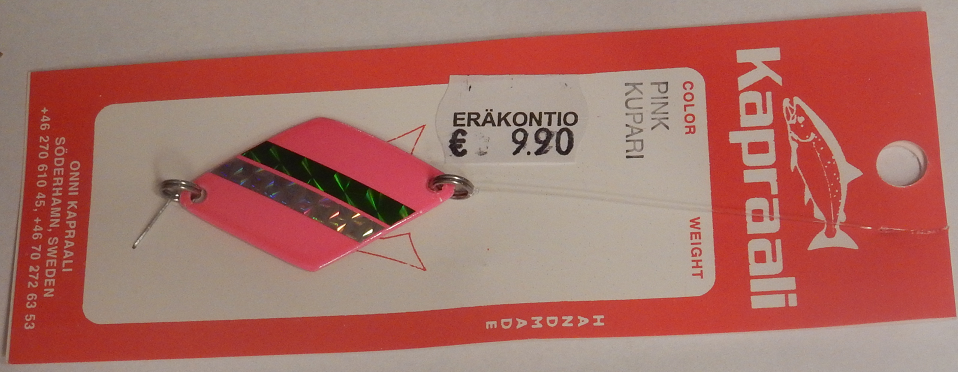 Kapraalin rautupilkki, malli:7,pituus:45mm. Väri:Pinkki-kupari, keskellä vihreä ja hopea -teippi.