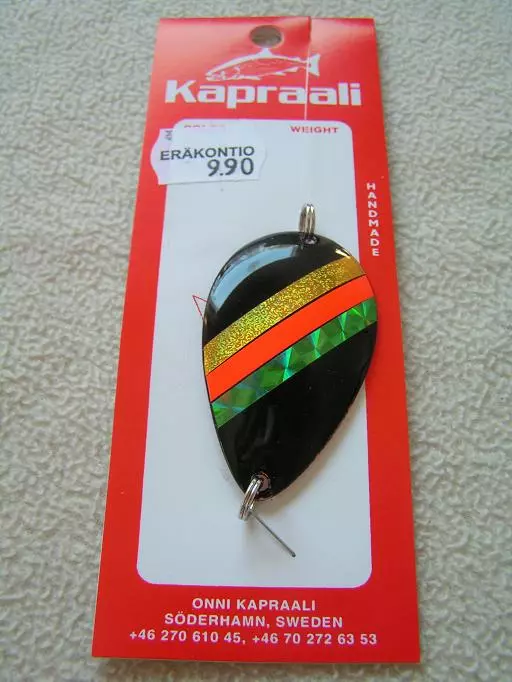 Kapraalin rautupilkki, malli:1,pituus:55mm. Väri:Musta-kupari, keskellä kultainen-,punainen- ja vihreä teippi-raita.