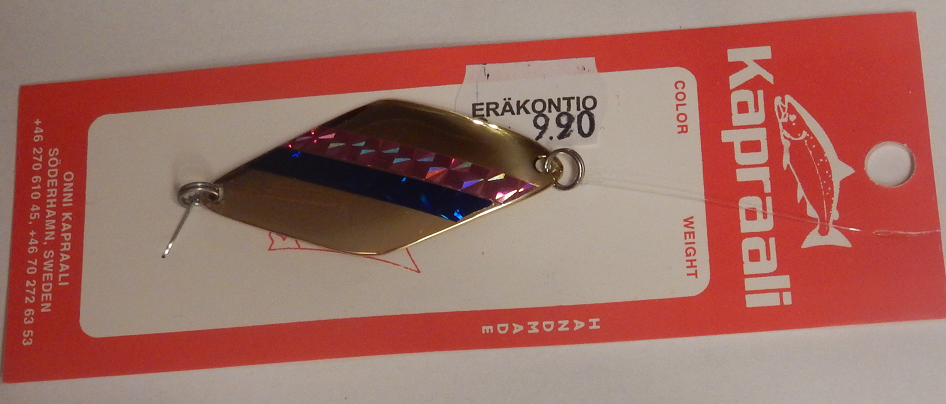 Kapraali-rautupilkki 60mm,Malli:8,Messinki,vaaleanpunainen/sininen -raita