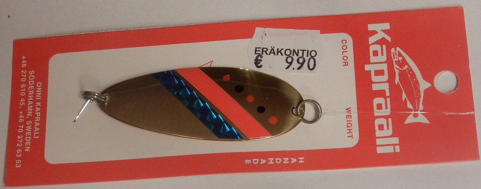 Kapraali-rautupilkki 70mm,Malli:2,Messinki,sininen/punainen -raita, Sekä Mustia Ja Punaisia Pisteitä