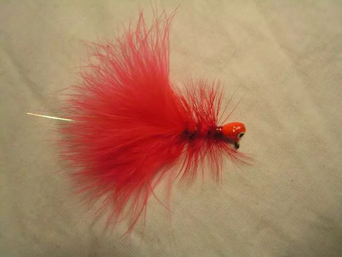 Punainen Leech, punaisella marabou-pyrstöllä. Paino:2.5g.