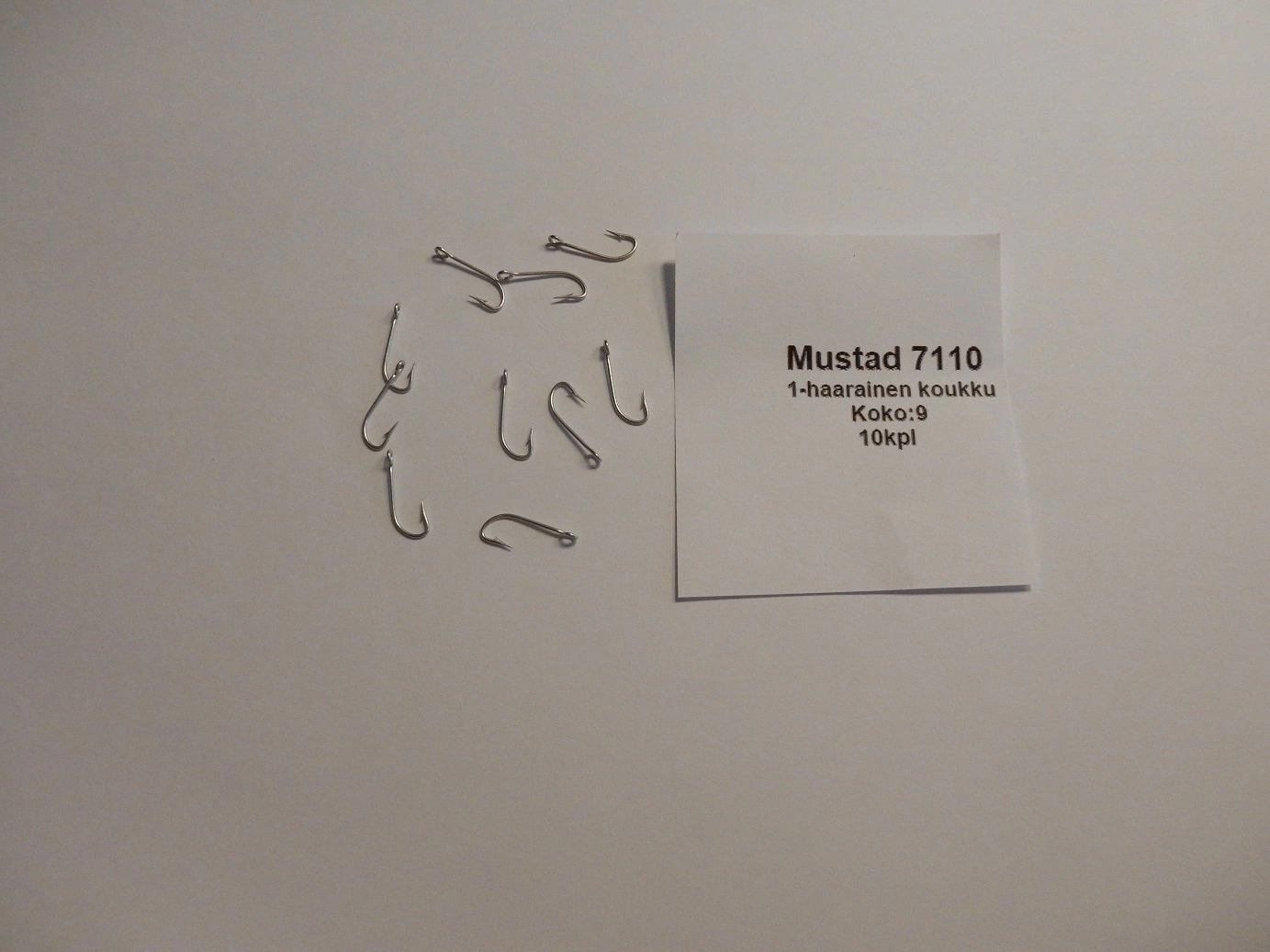 Mustadin hopeinen kalastuskoukku. Koko:9, pituus:1.50cm, kidan koko:0.47cm. Pussissa 10kpl koukkuja.