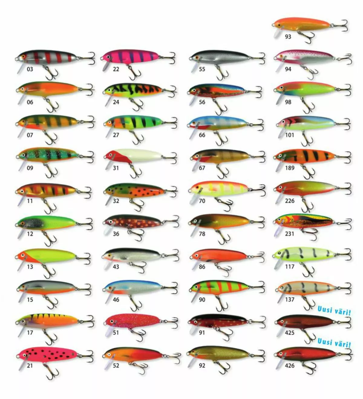 Löytyy myös värikartasta puuttuvat värit:010,016, 028,047,053,074,075,097.