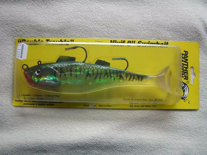 Panther Martin Vivif 9′ Swimbat -jigi. Kahdella Mustadin merivedenkestävällä koukulla varustettu jigikala suurten saaliiden kalastajalle. Vetouisteluun ja jiggaukseen erilliset kiinnityslenkit jigipäässä. Pituus:23.5cm, paino:200g,väri:FTH.