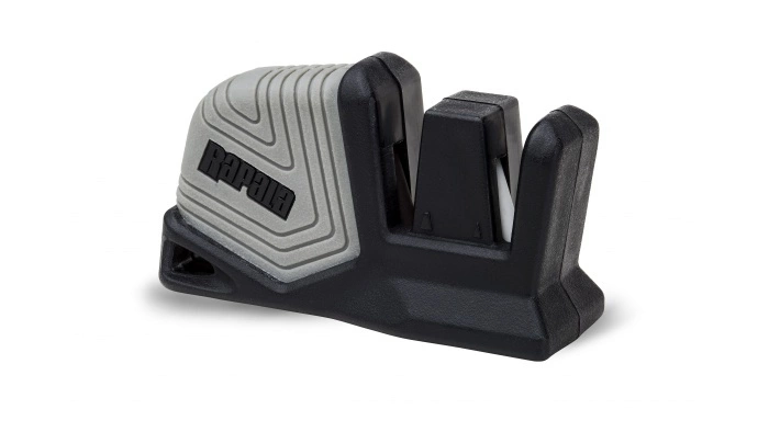 Rapala RCD -veitsen teroitin on juuri oikean kokoinen tarjoten tukevan otteen sekä mahtuen kalastuslaukkuun tai pakkiin. Sen toiminta on kaksivaiheinen: tylsä veitsi esiteroitetaan karkeammilla mustilla hiontapinnoilla. Veitsen terä viimeistellään huipputeräväksi valkoisilla hiontapinnoilla.