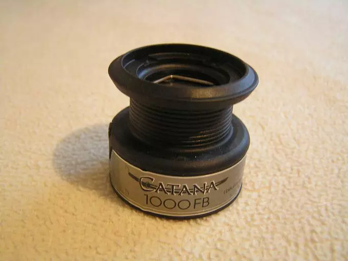 Shimano Catana 1000FB -etujarrullisen kelan grafiittinen varapuola.