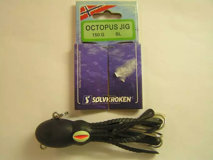 Solvkrokenin mustekala-jigi merikalastukseen, väri:musta, paino:150g.