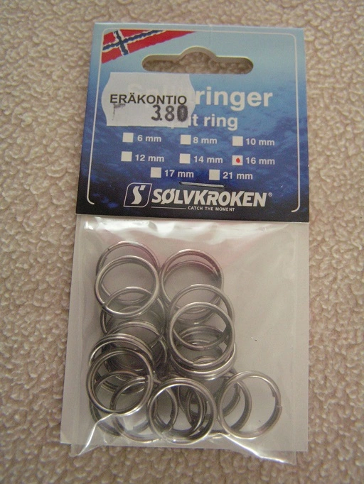 Solvkrokenin meriveden kestävät uistinrenkaat, koko:16mm, 20kpl renkaita pussissa.