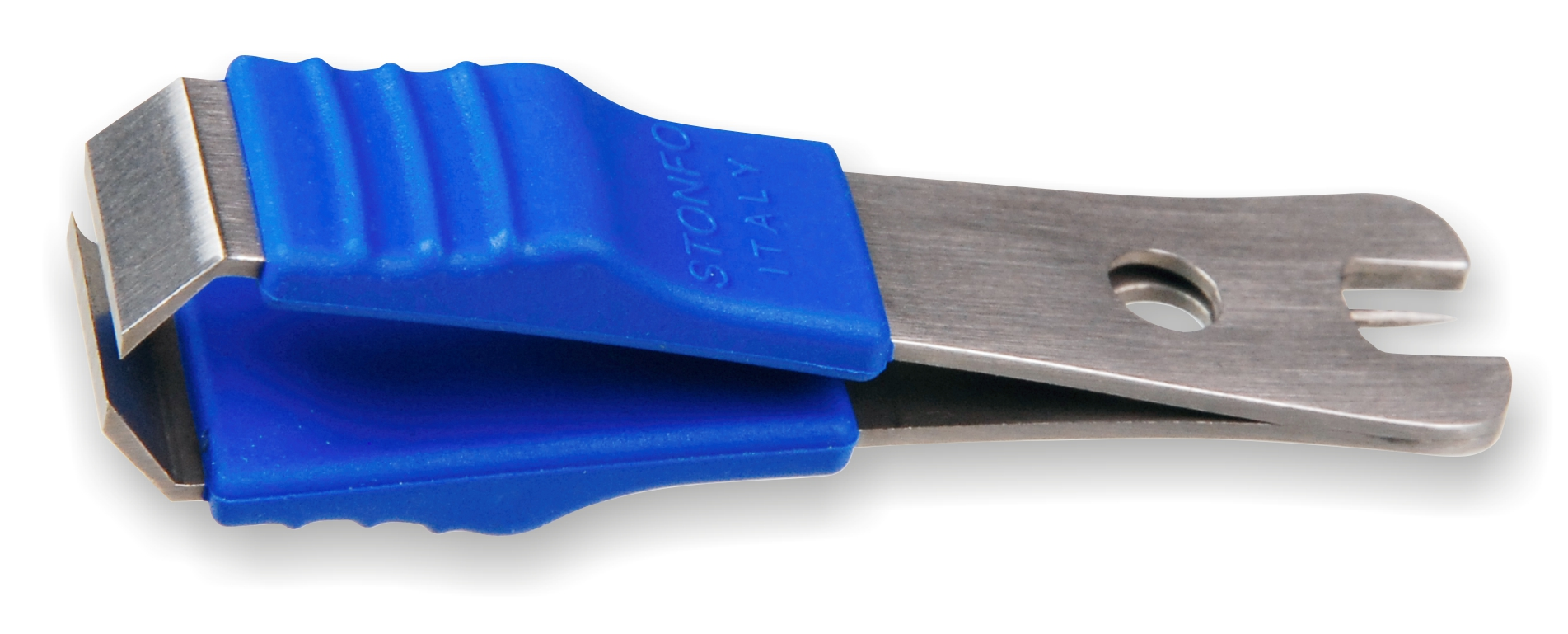 Stonfo -siimaleikkuri. Teräksestä valmistettu leikkuri. Leikkaa myös punottua siimaa.