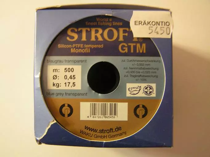 Suosittu Stroft GTM -monofiili pilkki- ja perukesiima, väri:kirkas, pituus:500m.