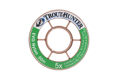 TroutHunter Nylon EVO Tippet perukesiima on erityisesti pintaperhokalastajille suunniteltu perukesiima. TroutHunterin uusi EVO Tippet materiaali on ominaisuuksiltaan täydellinen pintasiima tarjoten kalastajalle paremman murtolujuuden, solmukestävyyden ja kelluvuuden. Normaali nylon uppoaa noin kahdessa tunnissa, mutta tämä siima ei uppoa edes kahdessa viikossa, sekä solmunkestävyys on fluorocarbonin luokkaa. Huomion arvoista on myös se, että siima on todella vähämuistista, eikä se näin ollen mene helposti sotkuille. Siimassa on täysin luonnollinen ja myrkkyvapaa pinnoite.