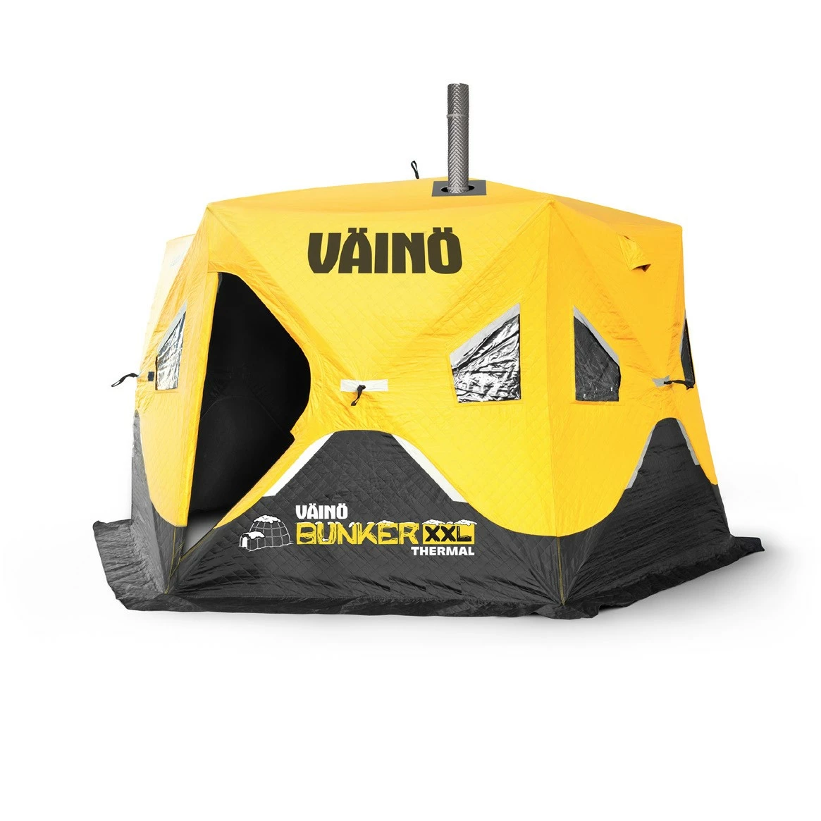 Suurikokoinen Pop-up pilkkiteltta joka on nopea pystyttää ja purkaa. Teltassa PVC ikkunat jotka on peitettävissä läpällä. SBS vetoketjut takaavat ovien toiminnan kylmässäkin kelissä. Teltassa ilmastointi venttiilit joiden avulla kosteudesta pääsee eroon. Runkorakenne 11.0mm kestävää lasikuitua. Materiaali on erikois Thermal Fabric-3Layer eli kolmikerros 300D Oxford jonka päälikangas on PVC pinnoitettu telttakangas, välissä eristyskerros ja sisällä vuorikangas. Teltta on 1000mm vedenpitävä. Avonainen pohja ja kulmissa kiinnikkeet teltan ankkuroimiseen jäänkanteen. Bunker Thermal Chimney Series teltassa on katossa läpivienti kaminan piipulle. Tämän ansiosta teltassa voi käyttää kaminaa lämmitykseen ja ruoanlaittoon. Läpivienti on eristetty ja se on palamaton. Mukana tulee säilytys/kantopussi. Mukana 9 ruuvia. Paino 15kg Todella suuri koko: 292x198x310cm.