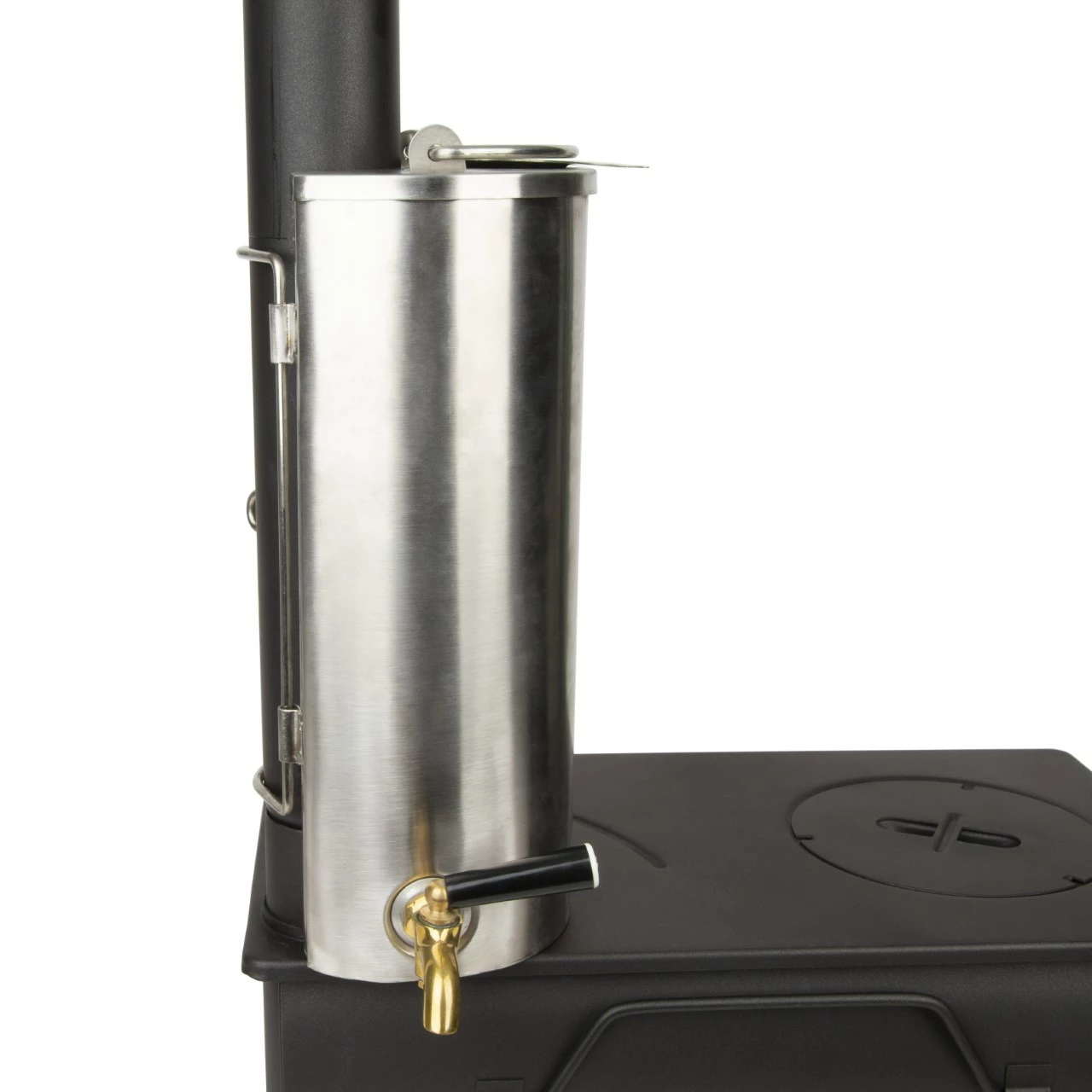 +Ruostumattomasta teräksestä valmistettu 3 litran lämminvesivaraaja kamiinalle.