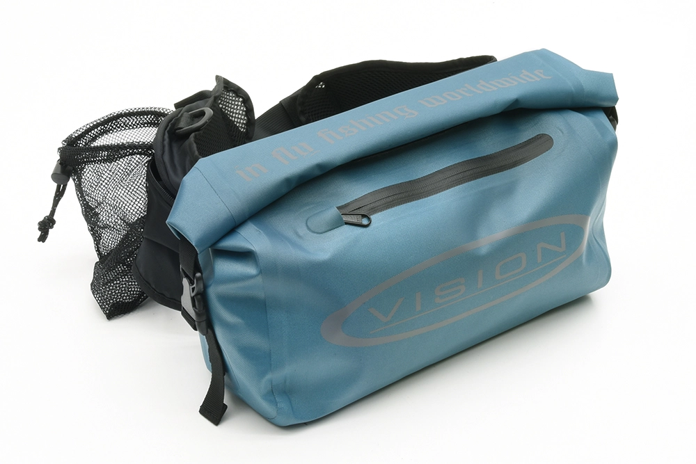 Loistava yleislaukku aktiiviselle kalastajalle. Sen sisään mahtuu helposti tärkeimmät perhorasiasi ja normikokoinen kamerakin. Säädettävässä vyössä on pienet taskut joiden sisästä löytyvät verkkotaskut esimerkiksi juomapulloille tai muille tarpeellisille tavaroille. Pienempi roiskeveden tiivis ulkotasku pitää perukerullasi ja perukkeesi helposti saatavilla. Vyölaukussa on rullaamiseen ja solkiin perustuva pikalukitus, joten se on helppo ja nopea avata ja sulkea jopa yhdellä kädellä. Seikka jota kahlaava ja valokuvaava perhokalastaja osaa arvostaa keskellä koskea kalan haavitessaan. Muistathan että laukku on vesitiivis vain ja ainoastaan jos se on suljettu kunnolla.