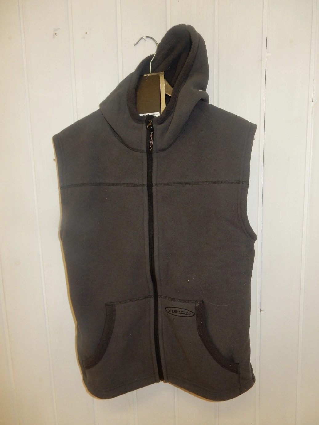 Polartecin Wind Pro -kankaisessa, harmaan värisessä liivissä on kokopitkä vetoketju edessä, sekä päätä suojaava huppu. Käsille lämmittely taskut. Monipuolinen tyylikäs fleeceliivi kalastukseen ja muuhunkin toimintaan.