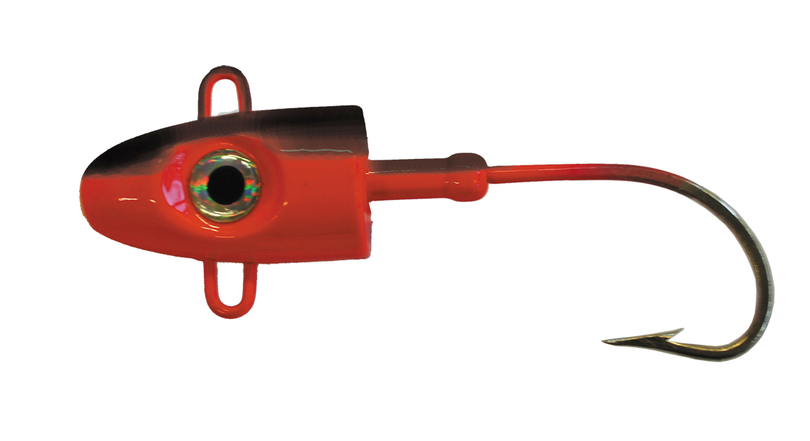 Isokokoinen jigipää merijigeille, paino:100g, koukku:10/0, väri:Musta-Punainen.