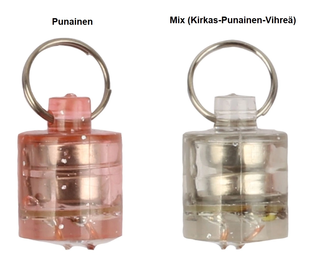 Punainen -vilkkuledin käyttöaika on 70h, Mix eli kirkas-punainen-vihreä -vilkkuledin 40h.